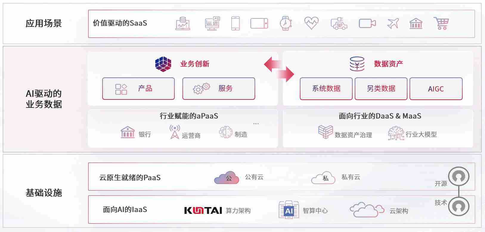 数字时代,,,围绕企业数字化转型的关键要素,,,,沐鸣2数码开创性的提出数云融合战略和技术体系框架,,着力在云原生、、、、数字原生、、、、AI原生和信创产业上架构产品和服务能力,,为处在不同数字化转型阶段的快消零售、、、汽车、、金融、、、医疗、、、政企、、、教育、、、运营商等行业客户提供泛在的敏捷IT能力和融合的数据驱动能力,,,构建跨界融合创新的数字业务场景和新业务模式,,助力企业级客户建立面向未来的核心能力和竞争优势,,,,全面推动社会的数字化、、、、智能化转型升级。。。